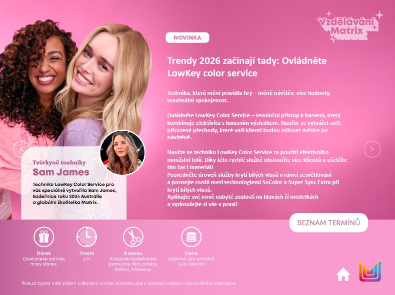 PRO ÚČASTNÍKY ŠKOLENÍ NABÍZÍME NA VLASOVOU KOSMETIKU V OBCHODĚ Č.B.: